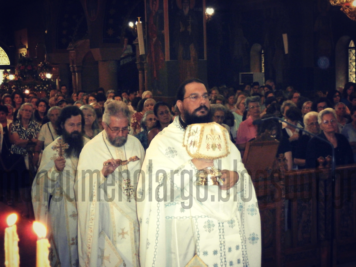 Συμβούλων και εκατοντάδων πιστών, ο Πανιερώτατος Μητροπολίτης Θερμοπυλών και Καθηγούμενος της Ιεράς Μονής Πεντέλης, κ. Ιωάννης, προεξήρχε της Θείας Ευχαριστίας, συμπαραστατούμενος από τους Εφημέριους του Ναού, π. Συμεών Βενετσιάνο, π. Ευγένιο Κονταρίνη, π. Συνέσιο Βικτωράτο, π. Ιωάννη Καλογερόπουλο και π. Κωνσταντίνο Στούμπο, καθώς και από τον Προϊστάμενο του γειτονικού Ιερού Ναού Υψώσεως Τιμίου Σταυρού Χολαργού, π. Συμεών Καλοπαναγιώτη.