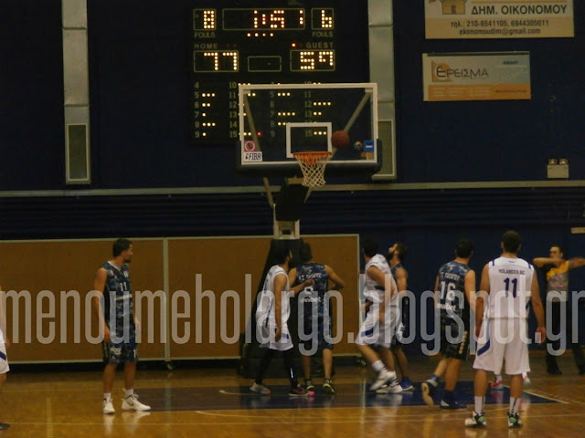 Σε ένα παιχνίδι που στην εξέδρα του «Αντώνης Τρίτσης» σημαδεύτηκε από επεισόδια και χειροδικίες μεταξύ Χολαργιωτών και Παπαγιωτών φιλάθλων και στον αγωνιστικό χώρο από συνεχείς αντεγκλήσεις ανάμεσα στους αθλητές των δύο ομάδων, ο Καλαθοσφαιρικός Όμιλος Χολαργού συνέτριψε με το ευρύ 80-64 τον Αθλητικό