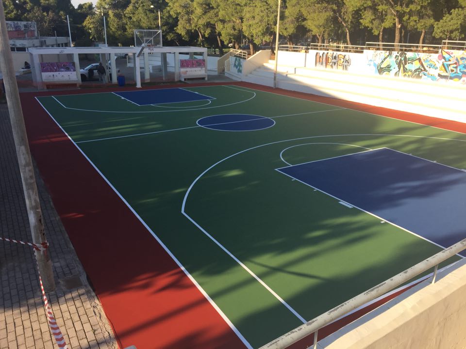 1. Ανοιχτό γήπεδο μπάσκετ επί της οδού Κύπρου. Έχουν επισκευαστεί ήδη οι κερκίδες και ξεκίνησαν οι εργασίες επισκευής του δαπέδου και επίστρωσής του με νέο ελαστομερή ακρυλικό τάπητα. Επίσης θα τοποθετηθούν νέα ταμπλό και στεφάνια στις υπάρχουσες μπασκέτες.