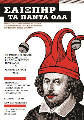 Η παράσταση θα παρουσιαστεί το Σάββατο 6/2/2016, στις 6.00 μ.μ., στο αμφιθέατρο «Μίκης Θεοδωράκης» του Δήμου Παπάγου-Χολαργού.