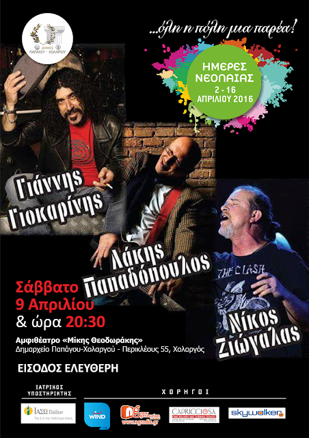Η εκδήλωση θα πραγματοποιηθεί στο Αμφιθέατρο «Μίκης Θεοδωράκης» του Δημαρχιακού Μεγάρου Χολαργού, ενώ στο τέλος της θα ακολουθήσει συναυλία με τους Λάκη Παπαδόπουλο, Γιάννη Γιοκαρίνη και Νίκο Ζιώγαλα.