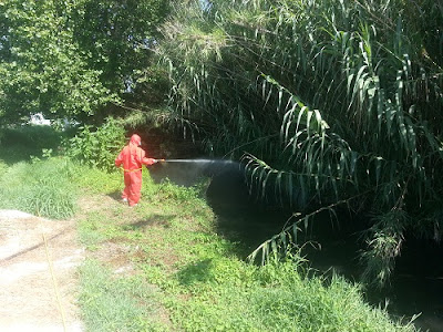 α. Οι περιοχές που θα ψεκαστούν, πλην των φρεατίων, θα οριοθετηθούν με έγχρωμη κορδέλα. Κατά τη διάρκεια του ψεκασμού παρακαλούνται οι πεζοί να μην πλησιάζουν την οριοθετημένη περιοχή. Η απομάκρυνση της κορδέλας θα γίνει όταν στεγνώσει το ψεκαστικό υγρό (1-2 ώρες αρκούν).