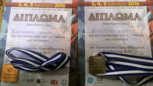 Την κατάκτηση του αργυρού μεταλλίου από το Μανώλη Δημητρίου και του χάλκινου από το Γιώργο Βαλληνδρά πανηγύρισε το τμήμα kick boxing του Αίαντα Χολαργού στο Πανελλήνιο Πρωτάθλημα που διοργάνωσε στα Άνω Λιόσια το τριήμερο 3-5 Ιουνίου 2016 η Πανελλήνια Ομοσπονδία Kick Boxing. Υπό τη μαεστρική καθοδήγηση του προπονητή του τμήματος και γνωστού