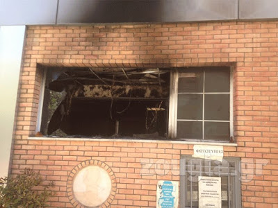 από το κτήριο, καθώς οι άγνωστοι έσπασαν την είσοδο προκειμένου να εισέλθουν στη δημόσια υπηρεσία και να τοποθετήσουν 4 γκαζάκια τα οποία εξερράγησαν στο ισόγειο.