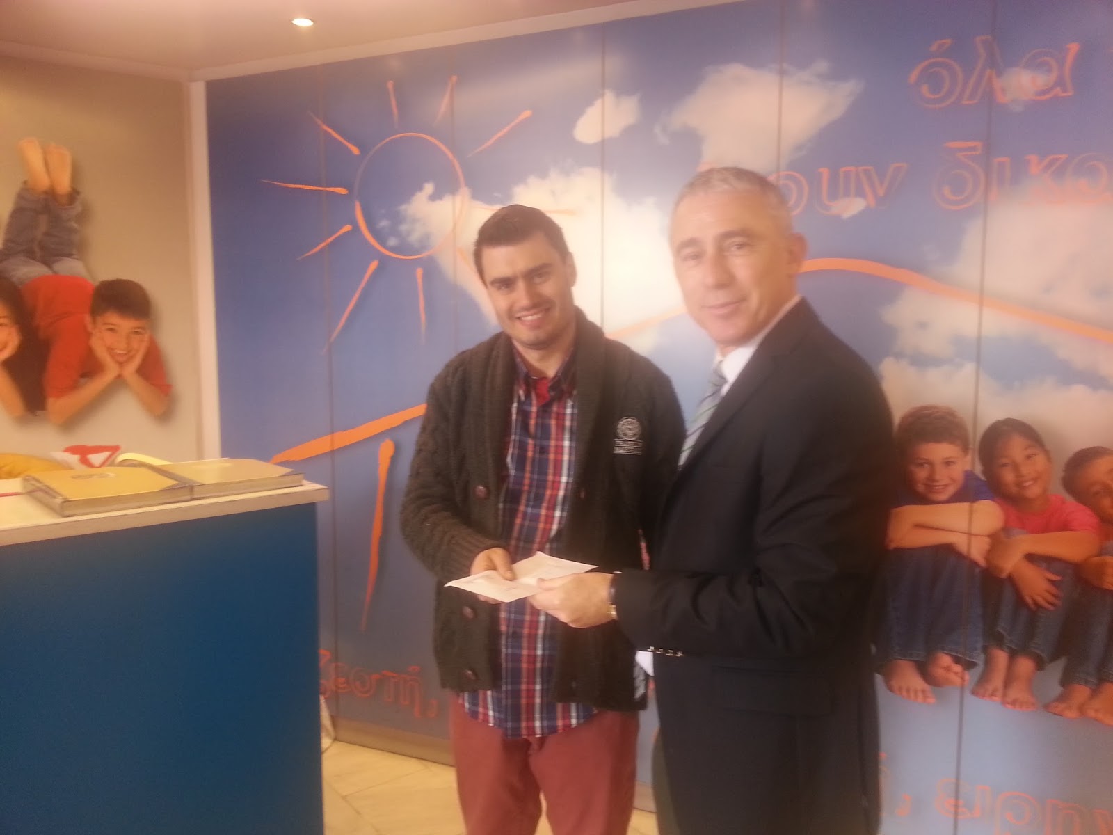 ποσό παρέδωσε στους υπεύθυνους του ιδρύματος ο ίδιος ο κ. Οικονόμου, ο οποίος εξέφρασε τις πιο θερμές του ευχαριστίες στους συνεισφέροντες συμπολίτες μας, καθώς και στη διεύθυνση του «Verde», για τη σημαντική της συμβολή στην επιτυχία της εν λόγω φιλανθρωπικής δράσης.