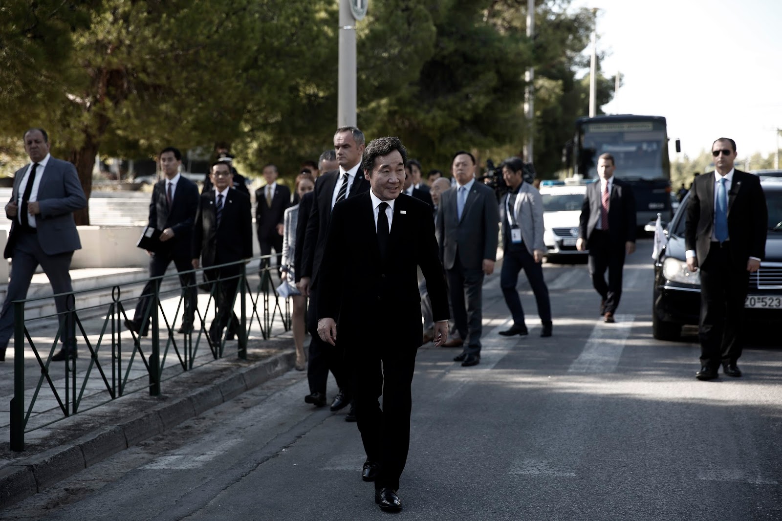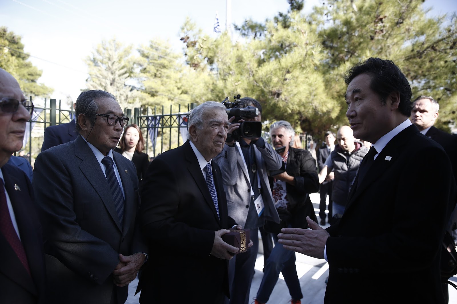 Τον Πρωθυπουργό υποδέχτηκε ο Δήμαρχος Παπάγου-Χολαργού, Ηλίας Αποστολόπουλος και στην τελετή παρόντες ήταν μεταξύ άλλων ο Πρέσβης της Δημοκρατίας της Κορέας στη χώρα μας, Ahn Young-Jip, εκπρόσωποι του ΓΕΑ, ΓΕΝ, ΓΕΣ, καθώς και βετεράνοι του Κορεατικού Πολέμου.