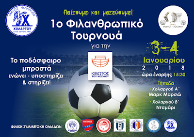 Το 1ο Φιλανθρωπικό Τουρνουά Ποδοσφαίρου, για τη στήριξη της «Κιβωτού του Κόσμου», διοργανώνει το διήμερο 3-4 Ιανουαρίου 2018 ο Όμιλος Φιλάθλων Χολαργού, με τη συμμετοχή 7 συνολικά ομάδων.