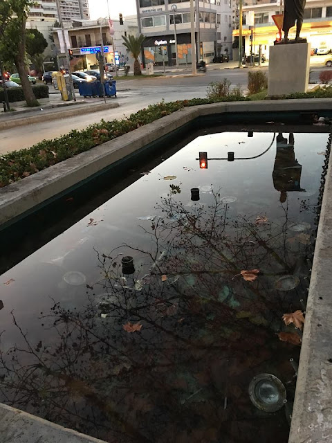 Την ίδια ώρα (και πάνω απ’ όλα την ίδια μέρα), ένα από τα ελάχιστα σιντριβάνια που διατήρησε η διοίκηση Αποστολόπουλου στην Περικλέους και σίγουρα το πιο επιβλητικό, αυτό πίσω από τον ανδριάντα του Περικλή, παρουσίαζε την παρακάτω εικόνα. Τα συμπεράσματα δικά σας…