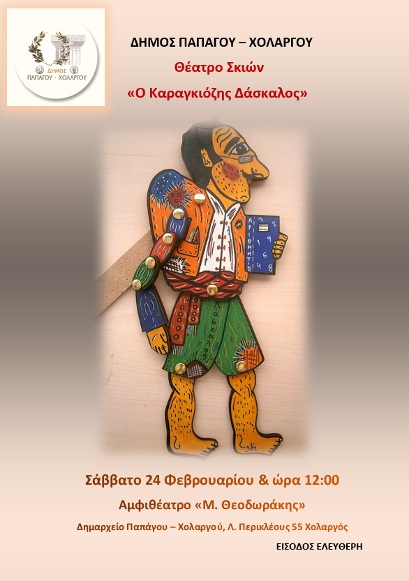 Θα το δούμε το Σάββατο 24 Φεβρουαρίου 2018 και ώρα 12:00 μ., στο Αμφιθέατρο «Μίκης Θεοδωράκης» του Δημαρχιακού Μεγάρου Χολαργού (Λ. Περικλέους 55). Είσοδος ελεύθερη.
