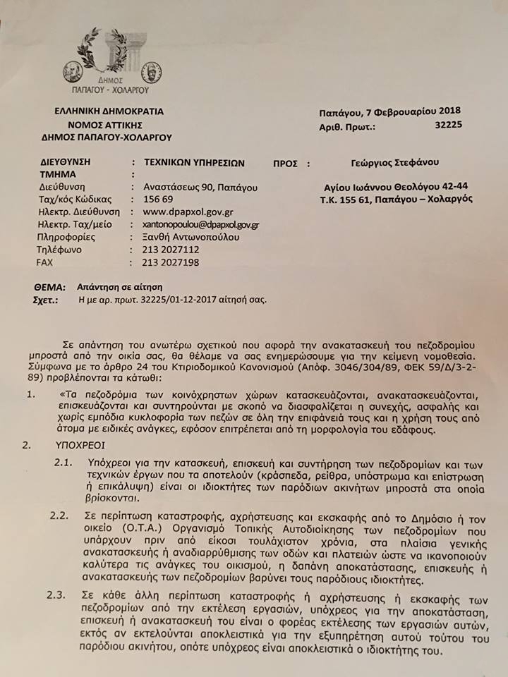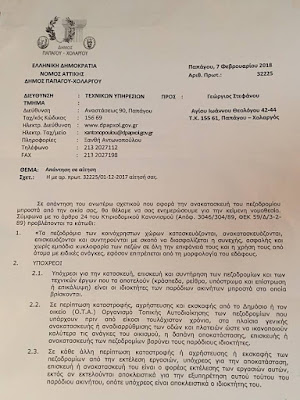 Διαβάστε την απάντηση της Τεχνικής Υπηρεσίας του Δήμου Παπάγου-Χολαργού σε επίσημο αίτημα δημότη αναφορικά με την επισκευή πεζοδρομίου και βγάλτε τα συμπεράσματά σας.