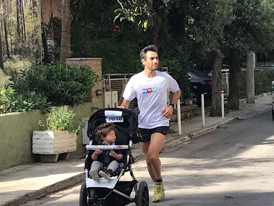 Πρώτη θέση για το Δημήτρη Καλιακούδη, που σε ολόκληρη τη διαδρομή των 5 χιλιομέτρων έτρεχε με το παιδάκι του στο καρότσι.