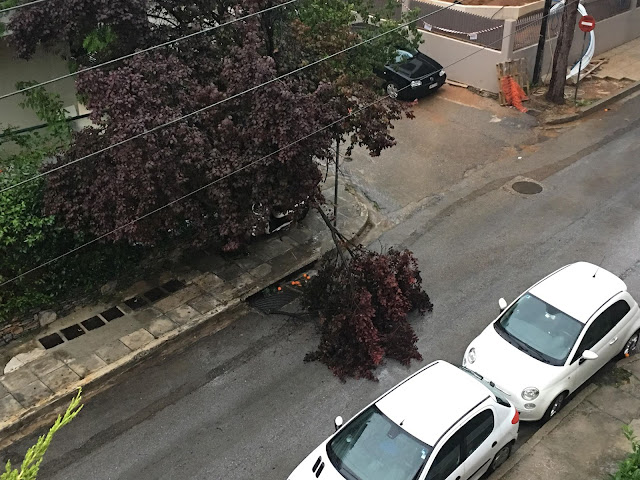 Πεσμένα δέντρα, σπασμένα κλαδιά και δρόμοι… ποτάμια είναι μερικά από τα όσα με εικόνα και ήχο καταφτάνουν στο «Μένουμε Χολαργό» από τους αναγνώστες του, σε μια ημέρα (6/5) με… ανοιχτούς ουρανούς σε ολόκληρο το λεκανοπέδιο.