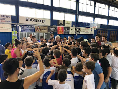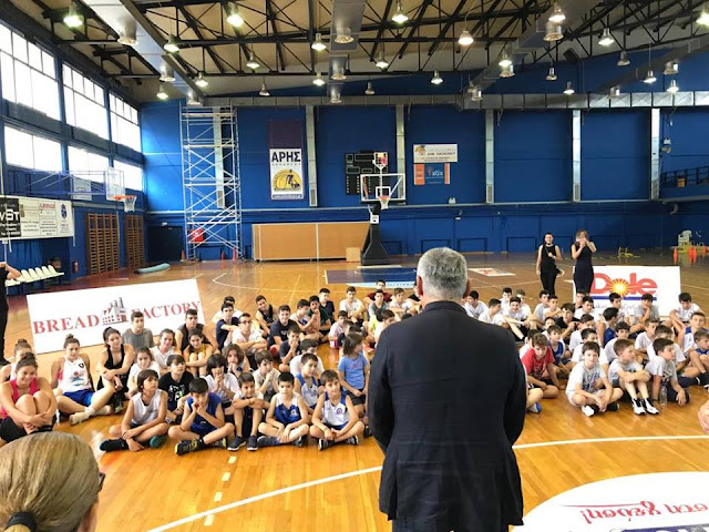 O «Δράκος» του ελληνικού μπάσκετ μίλησε για αρκετή ώρα στα παιδιά, απάντησε σε ερωτήσεις, ενώ έδωσε και τις πολύτιμες συμβουλές του τόσο στους νεαρούς αθλητές όσο και στους γονείς τους.