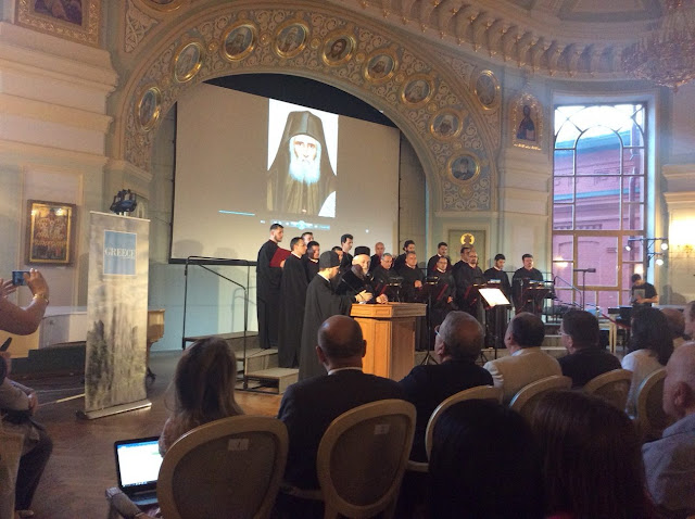 Η Βυζαντινή Χορωδία Αθηνών μετέβη στη Ρωσία υπό τη σεπτή ευλογία του Μακαριωτάτου Αρχιεπισκόπου Αθηνών και πάσης Ελλάδος, κ. Ιερωνύμου, συνοδευόμενη από τον Μητροπολίτη Δωδώνης, κ. Χρυσόστομο και τον εφημέριο του Καθεδρικού Ιερού Ναού Παναγίας Φανερωμένης Χολαργού, Αρχιμανδρίτη Συνέσιο Βικτωράτο, ύστερα από πρόταση της Υπουργού Τουρισμού, Ελένης Κουντουρά, σε συνεργασία με τον Έλληνα Πρέσβη στη Μόσχα, Ανδρέα Φρυγανά και τον Διευθυντή του Γραφείου του ΕΟΤ στη Μόσχα, Πολύκαρπο Ευσταθίου.