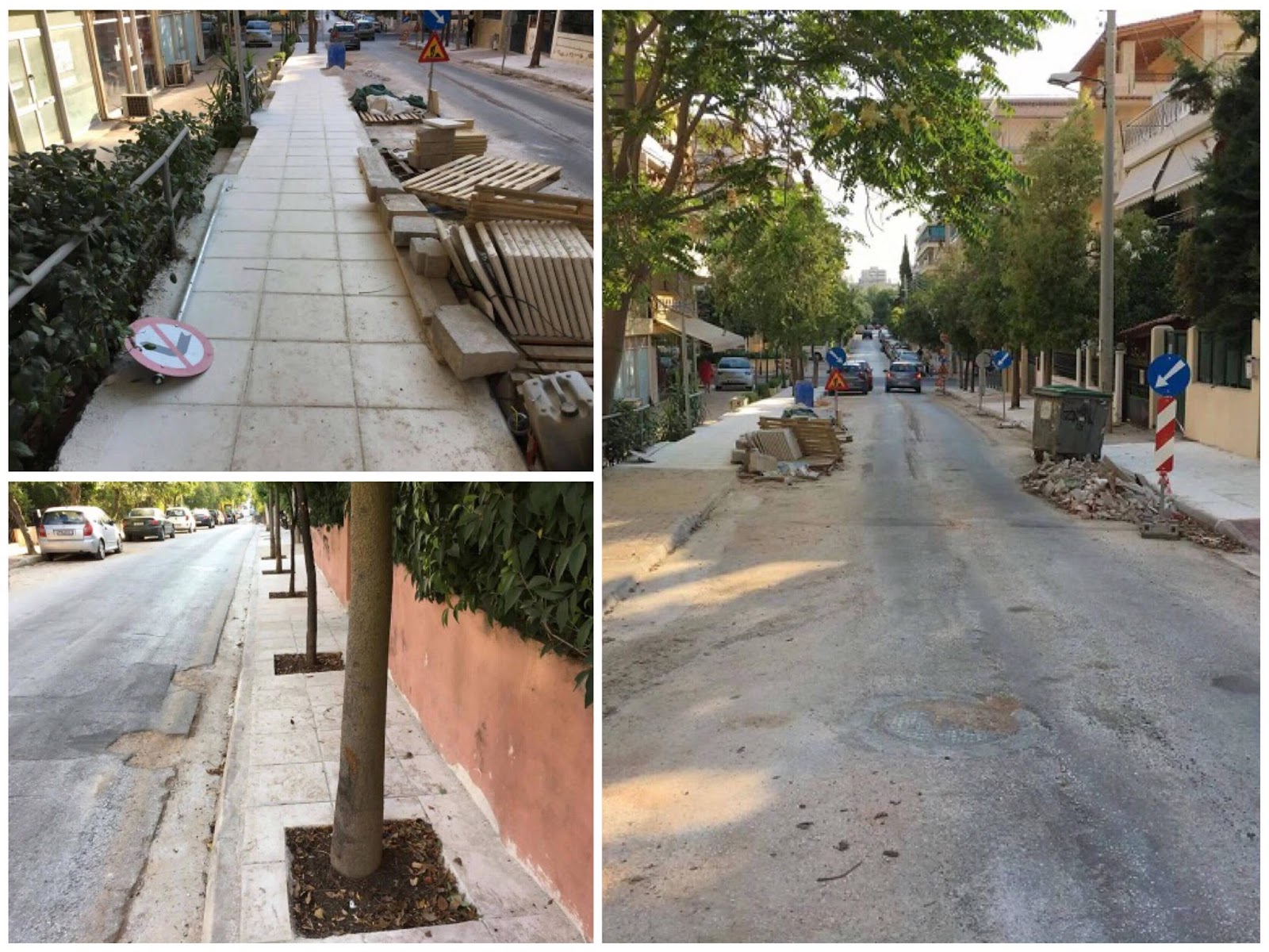 Με το έργο να έχει ήδη προχωρήσει, οι κάτοικοι της περιοχής και οι περαστικοί αντικρίζουν πλέον καθημερινά ολοκαίνουργια πεζοδρόμια μεν, απολύτως δυσλειτουργικά δε. Με μια μικρή εξαίρεση έξω από το ζαχαροπλαστείο του Μπουγά, όπου υπάρχει όντως ένα κομμάτι υπαρκτού πεζοδρομίου, σε όλο το υπόλοιπο μήκος και στις δύο πλευρές του δρόμου τα πεζοδρόμια μπορεί να έχουν ολόφρεσκες πλάκες, τις οποίες ωστόσο δεν πρόκειται ποτέ κανείς να περπατήσει, διότι πολύ απλά δεν χωράει άνθρωπος να βαδίσει επάνω τους.